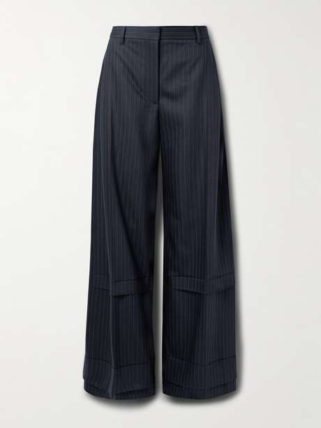KHAITE Linden tiered pinstriped herringbone twill wide-leg pants