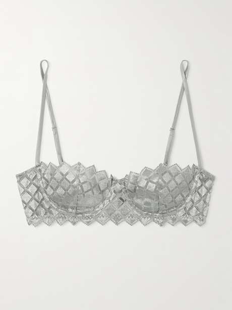 Inspired by the radiance of diamonds, Kiki de Montparnasse's 'Lamine' balconette bra gleams beautifully as it catches the light. It's made from embroidered silk-blend tulle and has supportive underwired cups and scalloped trims. You'll find the matching thong in our edit.