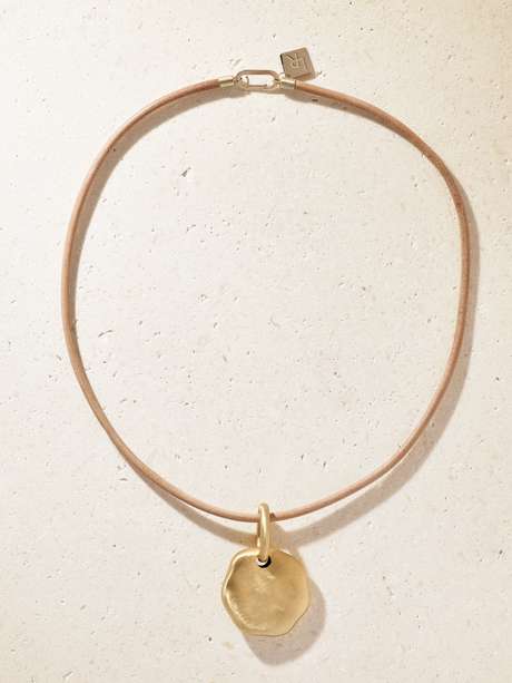LAUREN RUBINSKI 14-karat gold and leather necklace