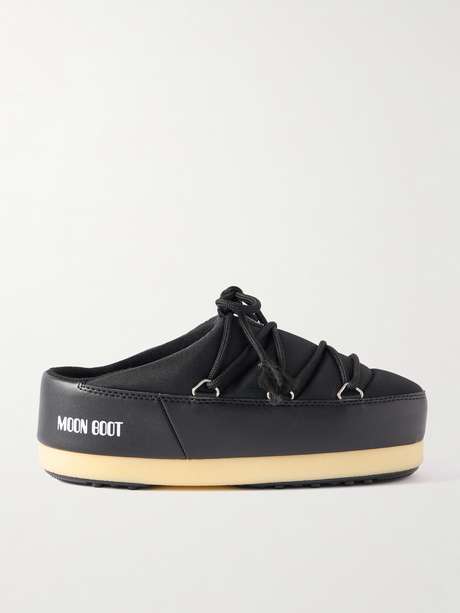 Moon Boot's 'EVX' mules reimagine the signature snow boots in a lower, slip-on design. Made from water-repellent shell, they're threaded with cord laces and have thick, gripped soles to keep you elevated from cold surfaces.