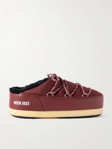 Moon Boot's 'EVX' mules reimagine the signature snow boots in a lower, slip-on design. Made from water-repellent shell, they're threaded with cord laces and have thick, gripped soles to keep you elevated from cold surfaces.
