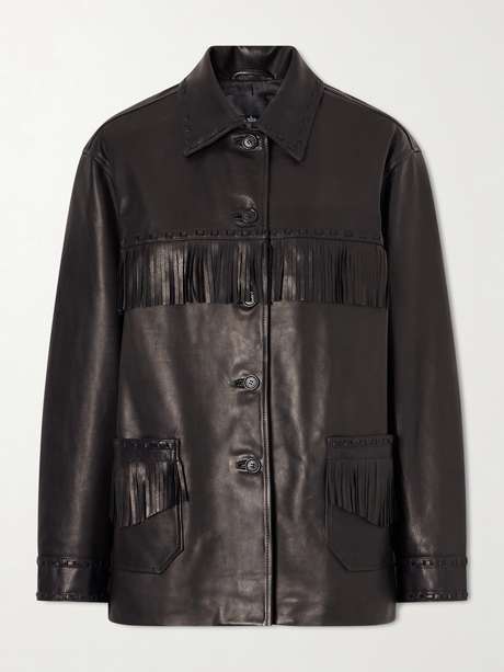 Nili Lotan channels a confident, free-spirited attitude through tactile materials and clean silhouettes. The “Gus” jacket is crafted from supple leather, detailed with swaying fringe that adds movement to its structured shape. Layer it over simple separates to let the texture take focus.