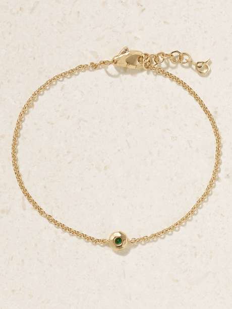 Octavia Elizabeth is endlessly inspired by the tactility of jewelry – so it's only fitting that the hammered finish on this 'Nesting Gem' bracelet is worked entirely by hand. Cast locally in LA from recycled 18-karat gold and bezel-set with a striking emerald, it features the designer's cursive initial on a dainty charm.