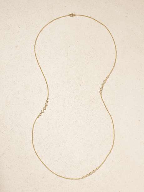 Octavia Elizabeth's 'Three Stop' necklace is named after the trio of diamond stations along the slim chain. It's handmade from 18-karat recycled gold and has a generous 30-inch length that's perfect for layering.