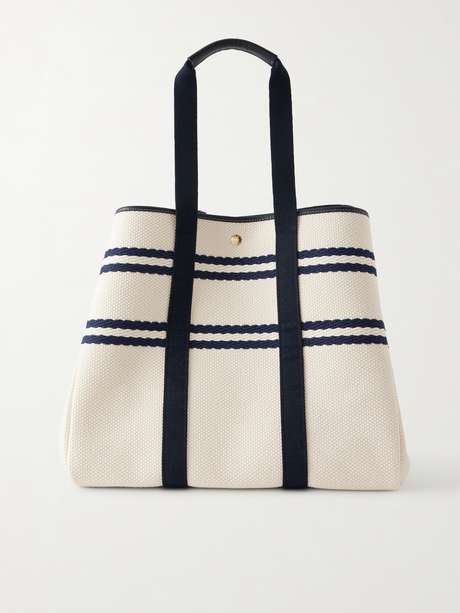 RUE DE VERNEUIL Traversée Glacier large webbing and leather-trimmed striped canvas tote