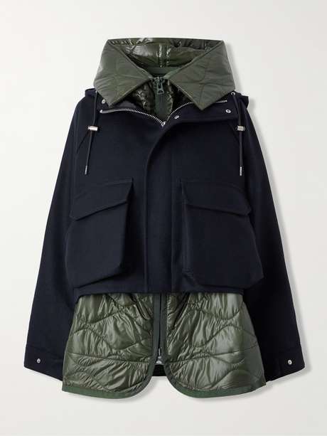 Sacai experiments with shape and tech-inspired textiles, so you know its collections will have a forward-thinking feel. This hooded jacket is made from a fusion of wool and quilted shell for an unexpected contrast – giving the illusion of two pieces in one.