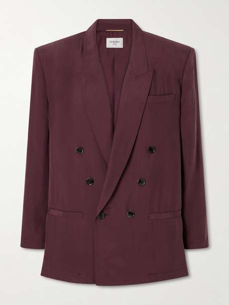 SAINT LAURENT Double-breasted silk-habotai blazer