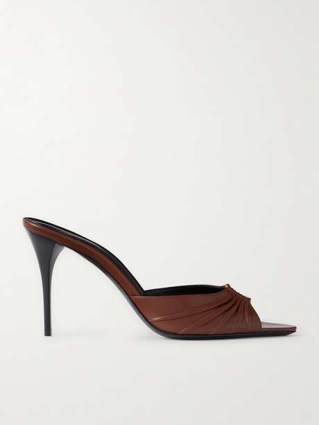 SAINT LAURENT's 'Babylone' mules are equal parts alluring and elegant. They're made from leather that's gathered for a textural finish and rest on slender 90mm heels. Show yours off with mini and midi hemlines.