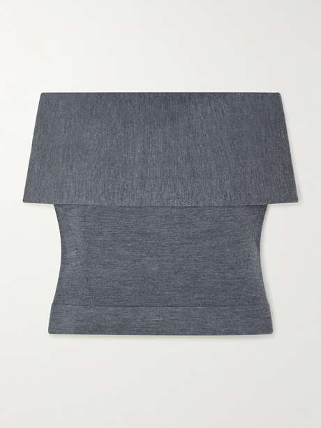 SIMKHAI's 'Callahan' top has a folded overlay at the elegant, shoulder-baring neckline. It's made from lightweight gray wool for a close fit and has a cropped hem.