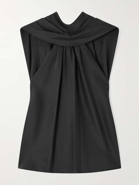 SIMKHAI's 'Scarlett' top is draped at the neckline, creating an artful cape effect. It's made from languid satin and has a relaxed fit.