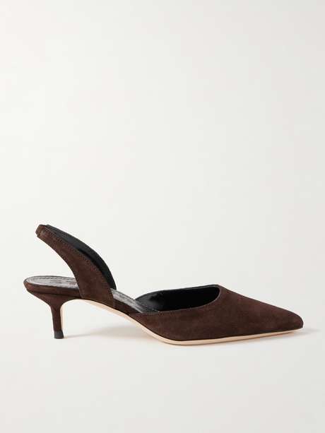 STAUD's 'Sebastian' pumps give a modern edge to a classic silhouette. Made from suede, they feature pointed toes, slingback straps, and low kitten heels. Bold yet versatile, they work day or night.