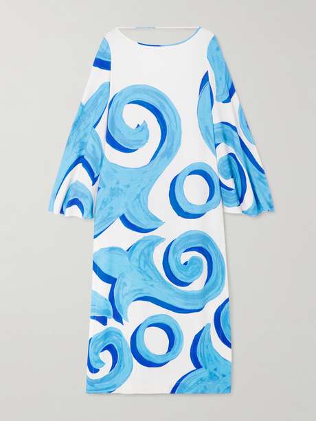 THEMIS Z's designs are influenced by the relaxed glamour and beauty of Athens, where the founder grew up. This 'Urania' maxi dress is made from satin printed with blue swirls that look as though they've been painted on by hand. It has a slightly loose fit with a deep V-shaped back.