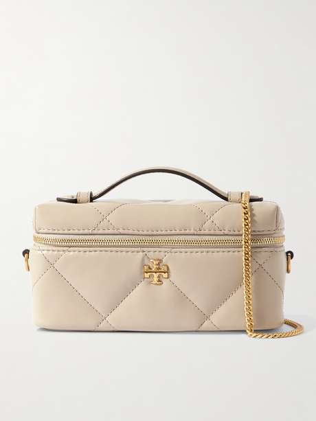 Tory Burch's 'Kira' shoulder bag is modeled on retro vanity cases. Made from quilted leather, it's adorned with the label's gold-tone logo and has a removable chain strap. Stow your cardholder, lipstick and keys inside.