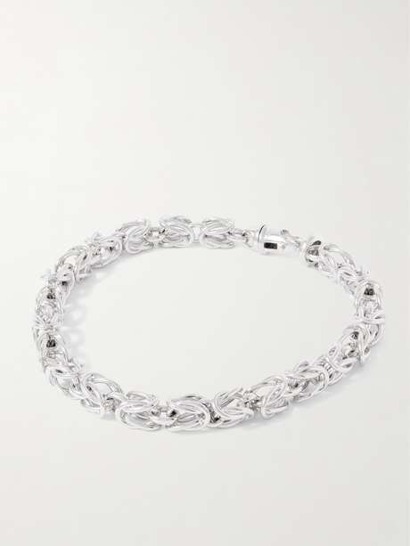 TOTEME's necklace is a modern interpretation of ancient 'Byzantine' chains. It's made from rhodium-plated layered links, creating a rope-like design.