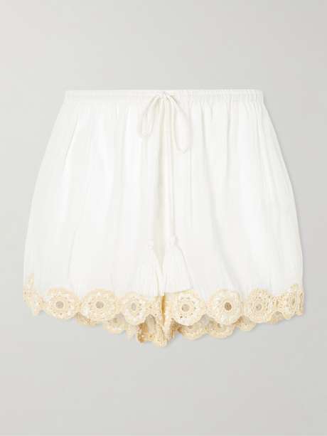 ULLA JOHNSON Liya crochet-trimmed cotton shorts