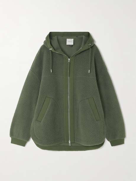 Varley's 'Fey' jacket is made from cozy recycled-fleece that'll keep you warm after a workout or when relaxing at home. It's cut in a slouchy shape with a roomy hood and detailed with tonal jersey trims.