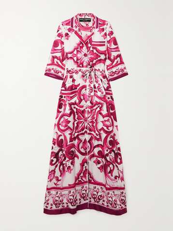 Maiolica belted printed silk-twill maxi shirt dress