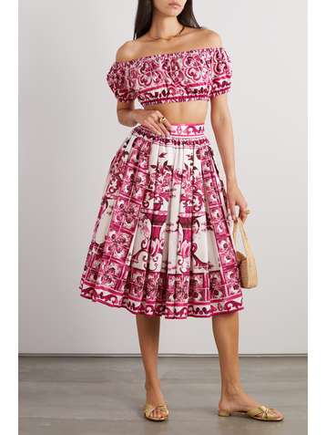 Feather-trimmed printed stretch-silk charmeuse skirt