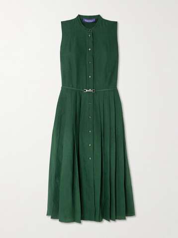 Kennedi belted pleated linen midi dress