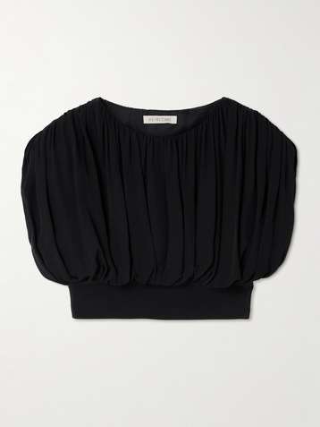 Cummerbund cropped gathered silk-georgette blouse