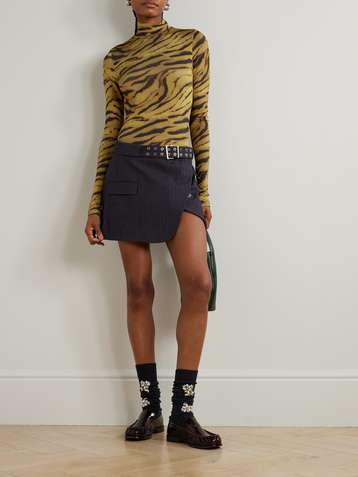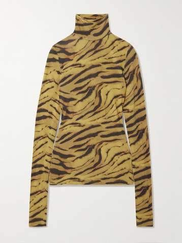 Zebra-print stretch-jersey turtleneck top