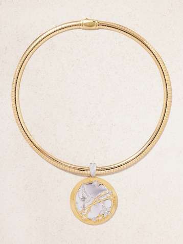 Karma 18-karat yellow and white gold, mother-of-pearl and diamond necklace