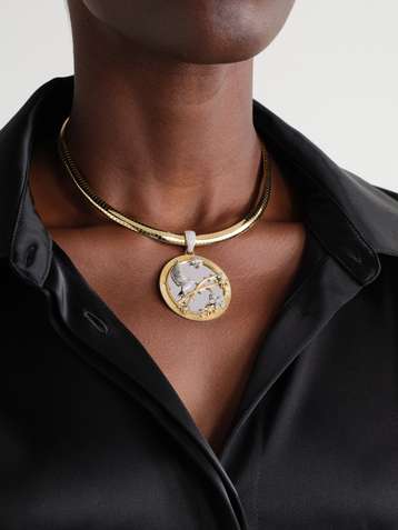 Moon Bloop 18-karat yellow and white gold diamond pendant
