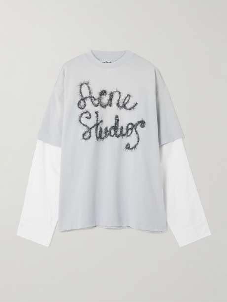ACNE STUDIOS Layered embroidered cotton-jersey and poplin T-shirt