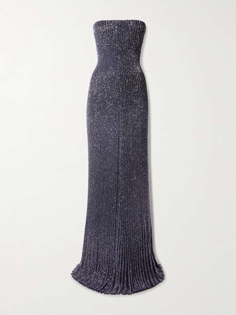 ALAÏA Strapless sequin-embellished metallic ribbed-knit gown