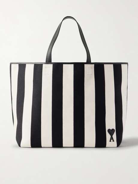 AMI PARIS Ami de Coeur striped leather-trimmed cotton-canvas tote