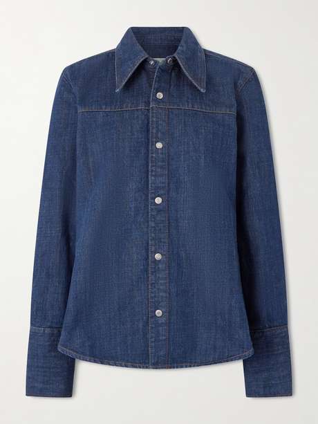 AMI PARIS' shirting is always two things: cool and classic. This one is cut from rich indigo denim with contrasting copper topstitching and has a pointed collar.
