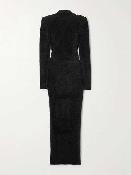 Balmain's knitted dress is the perfect partner for evening events. Designed in France, it has an open back and a brushed finish. Team yours with heeled pumps and gold jewelry to match the button embellishments.