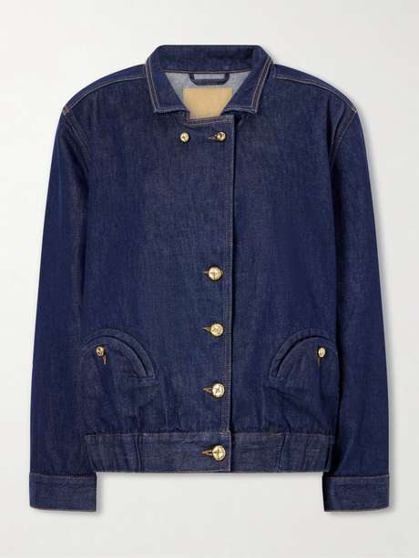 Blazé Milano’s 'Cleo' bomber is crafted from cotton denim in a blue wash with an oversized fit. Detailed with gold‑tone buttons and signature Smiley pockets, it layers effortlessly over a tee and tailored pants.