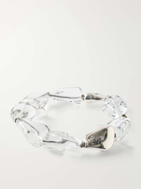 BOTTEGA VENETA Intercciato leather glass beaded necklace