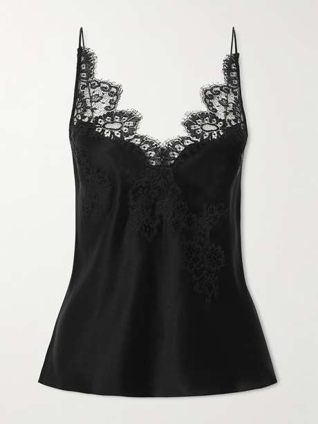 The beautifully intricate lace trims unfurling across the front of this camisole are a Carine Gilson signature. It's cut from smooth silk-satin with a lustrous sheen and completed with barely-there shoulder straps.