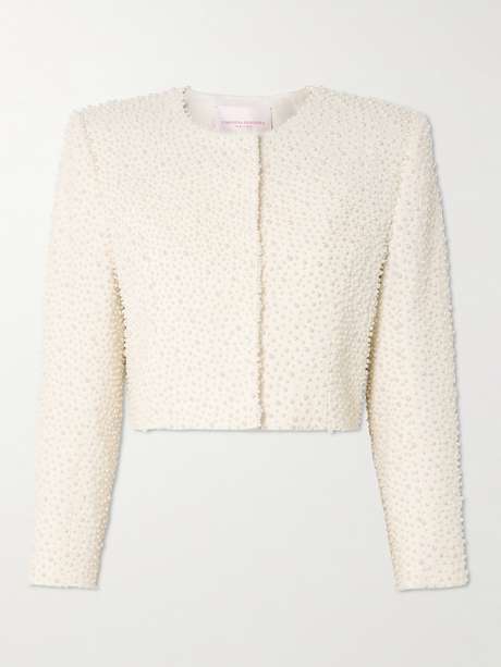 Carolina Herrera's jacket makes a feminine statement, especially when worn with the matching skirt. It's tailored from wool-blend crepe adorned with faux pearls, and has a boxy, cropped cut that lends a modern feel. Complement the collarless neckline with a dainty pendant.