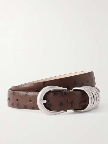 Déhanche's 'Hollyhock' belt is an easy way to finesse any outfit. It's been crafted in Italy from ostrich-effect leather for a textural contrast. The silver-tone buckle and signature five rings add Western charm.