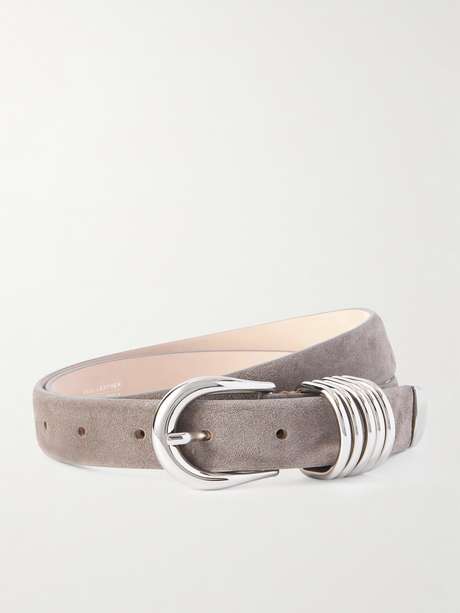 Déhanche believes that a good belt can be "the most elegant accessory in your wardrobe." Handcrafted in Italy, this 'Hollyhock' style is made from smooth suede and has a silver-tone buckle fastening with a row of rings instead of a simple loop.