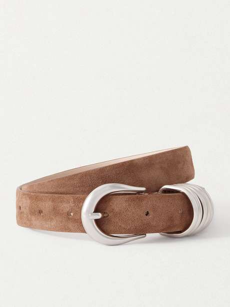 Déhanche believes that a good belt can be "the most elegant accessory in your wardrobe." Handcrafted in Italy, this 'Hollyhock' style is made from smooth suede and has a silver-tone buckle fastening with a row of rings instead of a simple loop.
