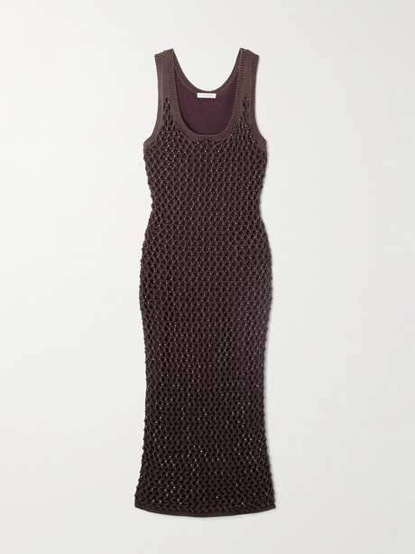 Diotima’s ‘Emin’ midi dress sparkles with hand-placed crystals that catch the light at every angle. It's made from a cotton-blend in an open construction and has a full lining for coverage through the figure-skimming shape.