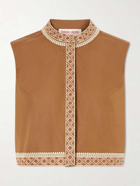 Emporio Sirenuse's elegant collections evoke the spirit of summers spent on the Italian Riviera. This 'Andorra' top is cut from cotton-blend poplin and traced with lace and embroidered geometric motifs along the edges.