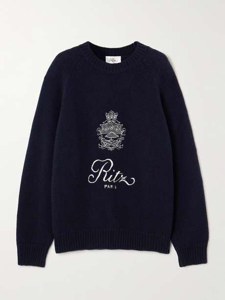 FRAME's ongoing collaboration with the Ritz captures the Parisian hotel's chic, luxurious style. Part of the latest drop, this sweater is knitted from pure cashmere for a plush handle and is embroidered with the establishment's iconic logo.