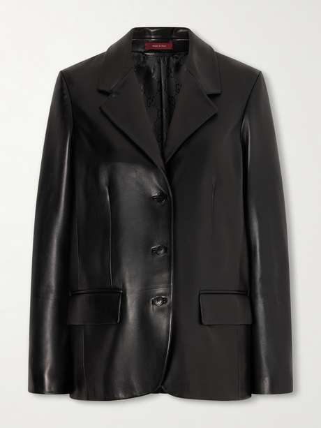 Gucci's blazer reflects the label's commitment to turning wardrobe staples into statement pieces. It's tailored from supple leather in a streamlined single-breasted profile and framed by sharp shoulders and peak lapels.
