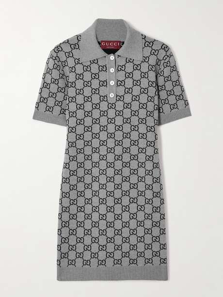 Gucci often honors its vast archives, so styles like this mini dress have a wonderfully nostalgic feel. Made from wool-blend, it's jacquard-knitted with the 'GG' emblem throughout and a classic polo collar and finely ribbed trims. Enhance the vintage feel with loafers or platform pumps.