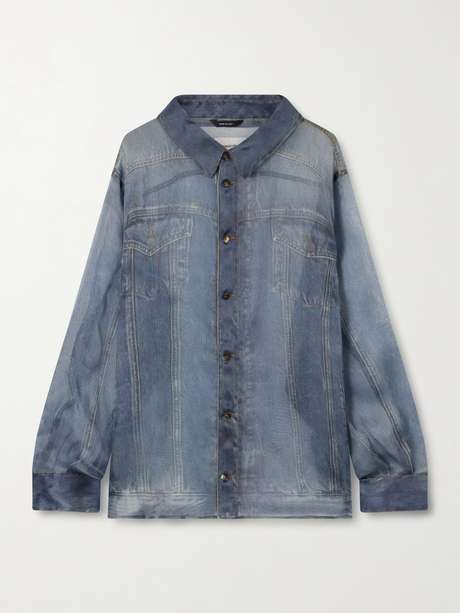 Haikure’s ‘Maya’ shirt offers a contemporary take on a classic silhouette. Made from airy silk-organza, it’s patterned with a subtle motif that lends depth to the fluid shape. Wear it with the matching pants from our edit.