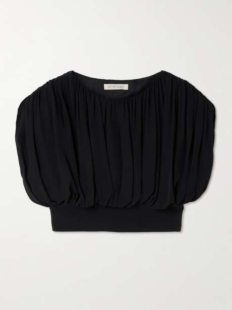 HEIRLOME Cummerbund cropped gathered silk-georgette blouse