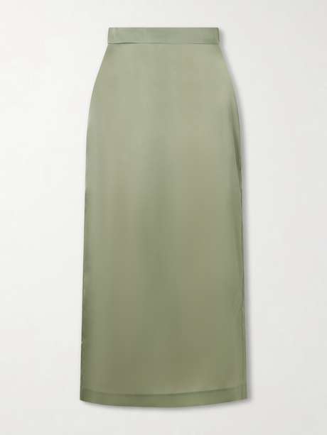 Heirlome’s 'Irene' skirt will prove a go-to option for countless occasions. Made from lustrous silk satin, it has a slit at the back for ease of movement and falls to a midi length. Style yours with a bra and sheer top.