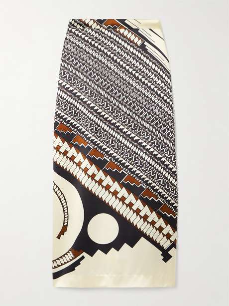 The geometric print mapping Heirlome's skirt is designed exclusively in collaboration with artist Alex Jurado whose work draws on the indigenous peoples of Mexico. It's cut from smooth, softly draped silk-satin and falls to an elegant midi length.