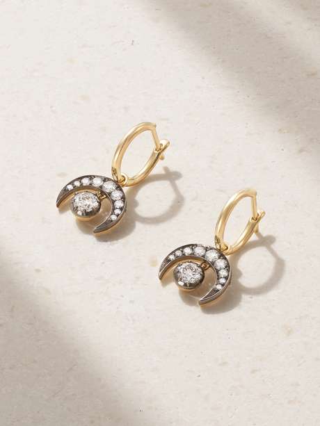 JESSICA MCCORMACK Crescent Moon yellow and blackened white gold diamond hoop earrings