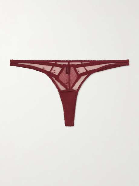 KIKI DE MONTPARNASSE Cerise embroidered mesh thong